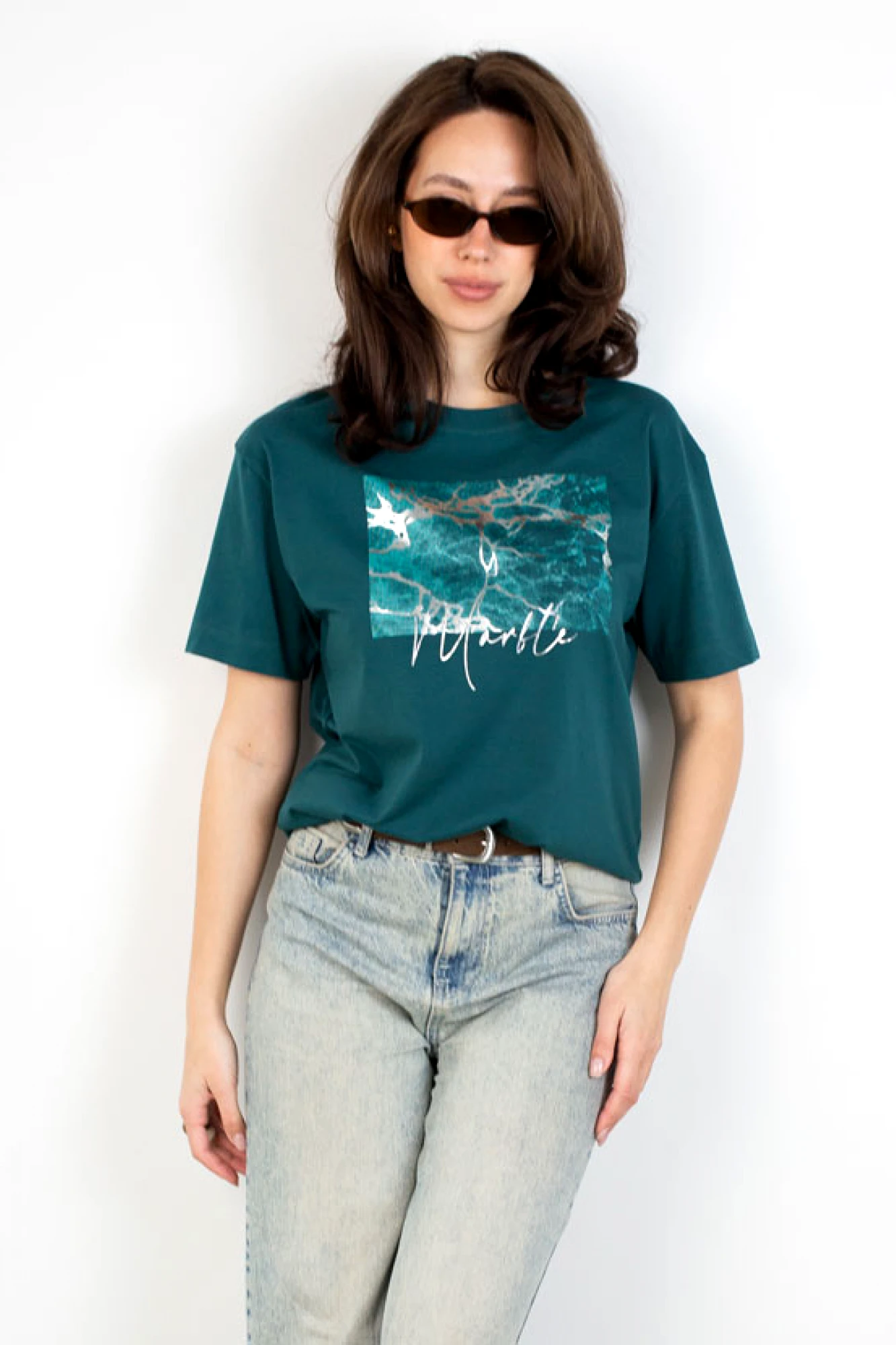 Футболка женская в цвете изумруд с набивкой