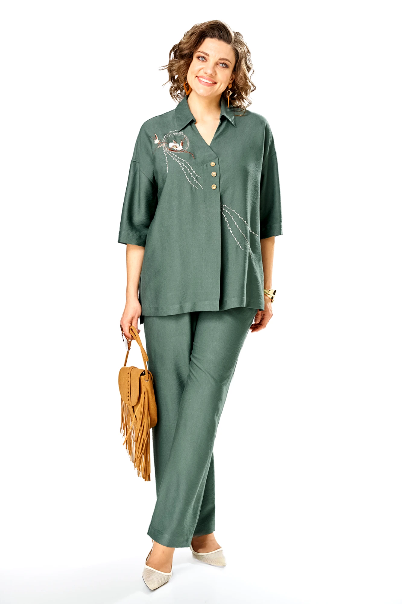 Костюм брючный, двухпредметный, состоит из блузы и брюк. ...