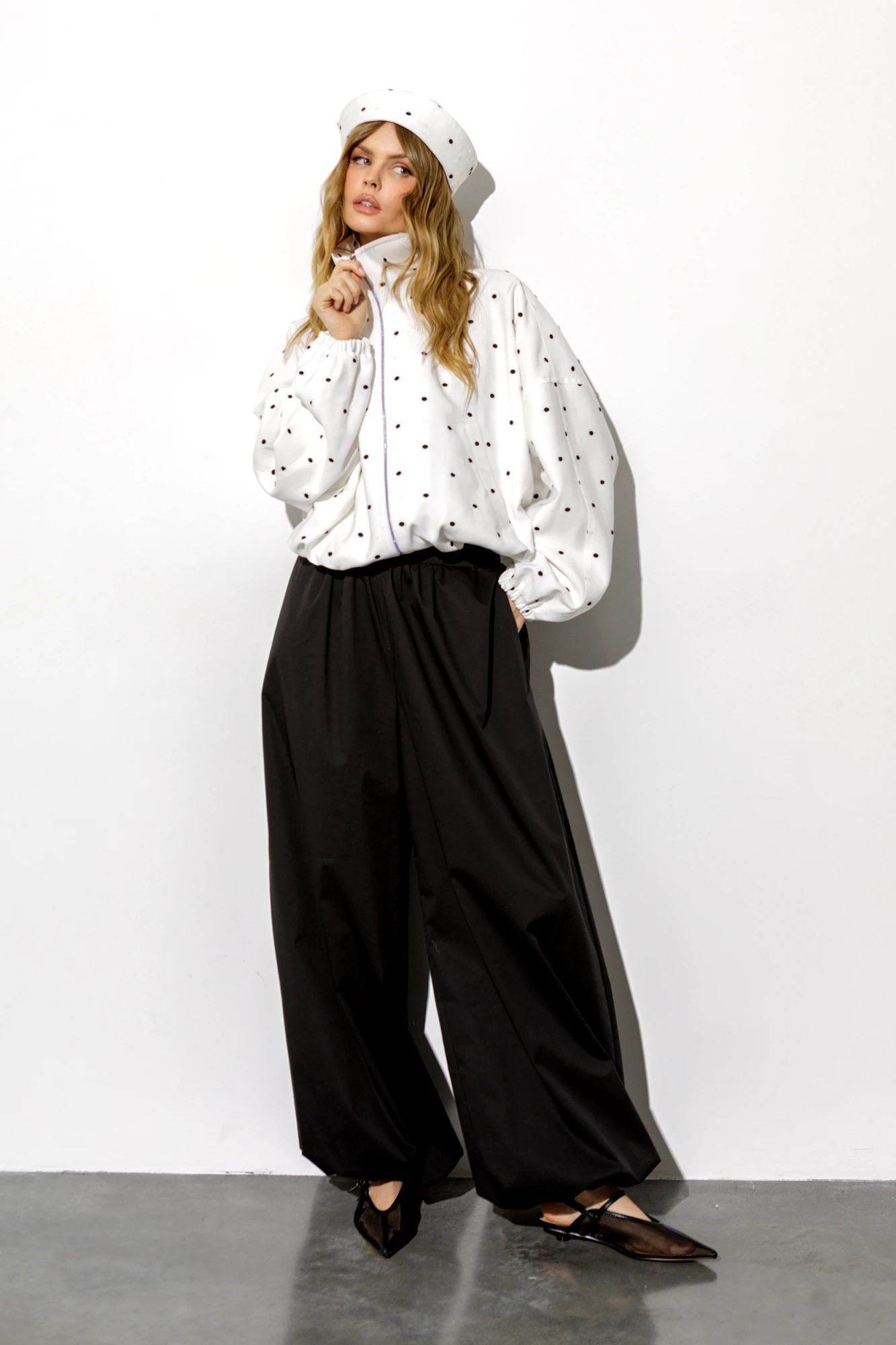 Комплект-двойка из укороченной ветровки в горошек О-силуэ...
