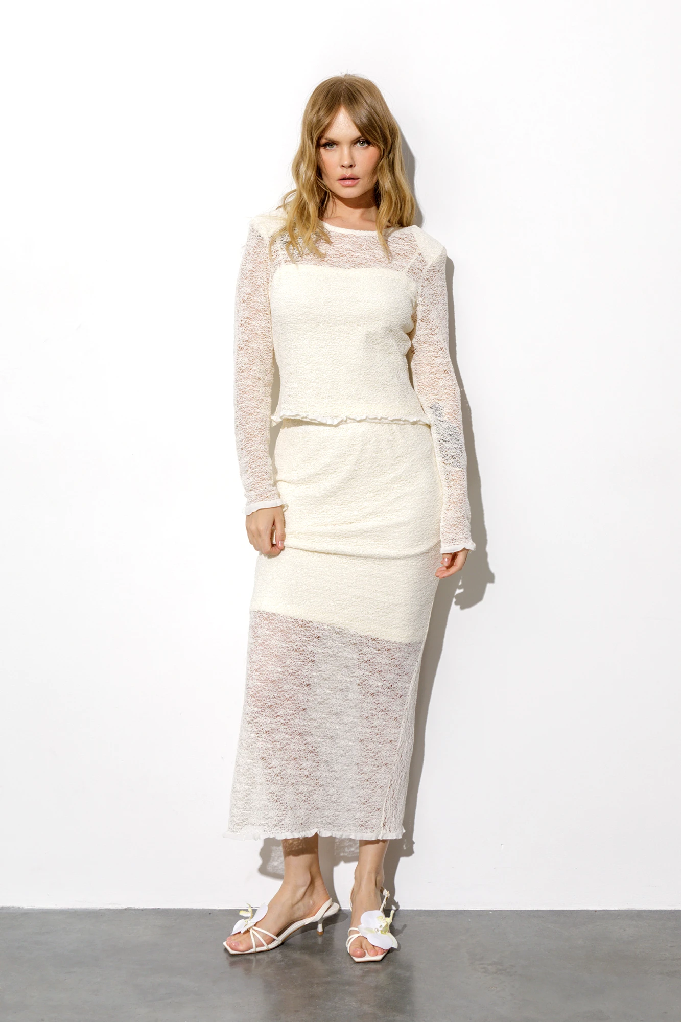 Ажурный трикотажный комплект-тройка из облегающего лонгсл...