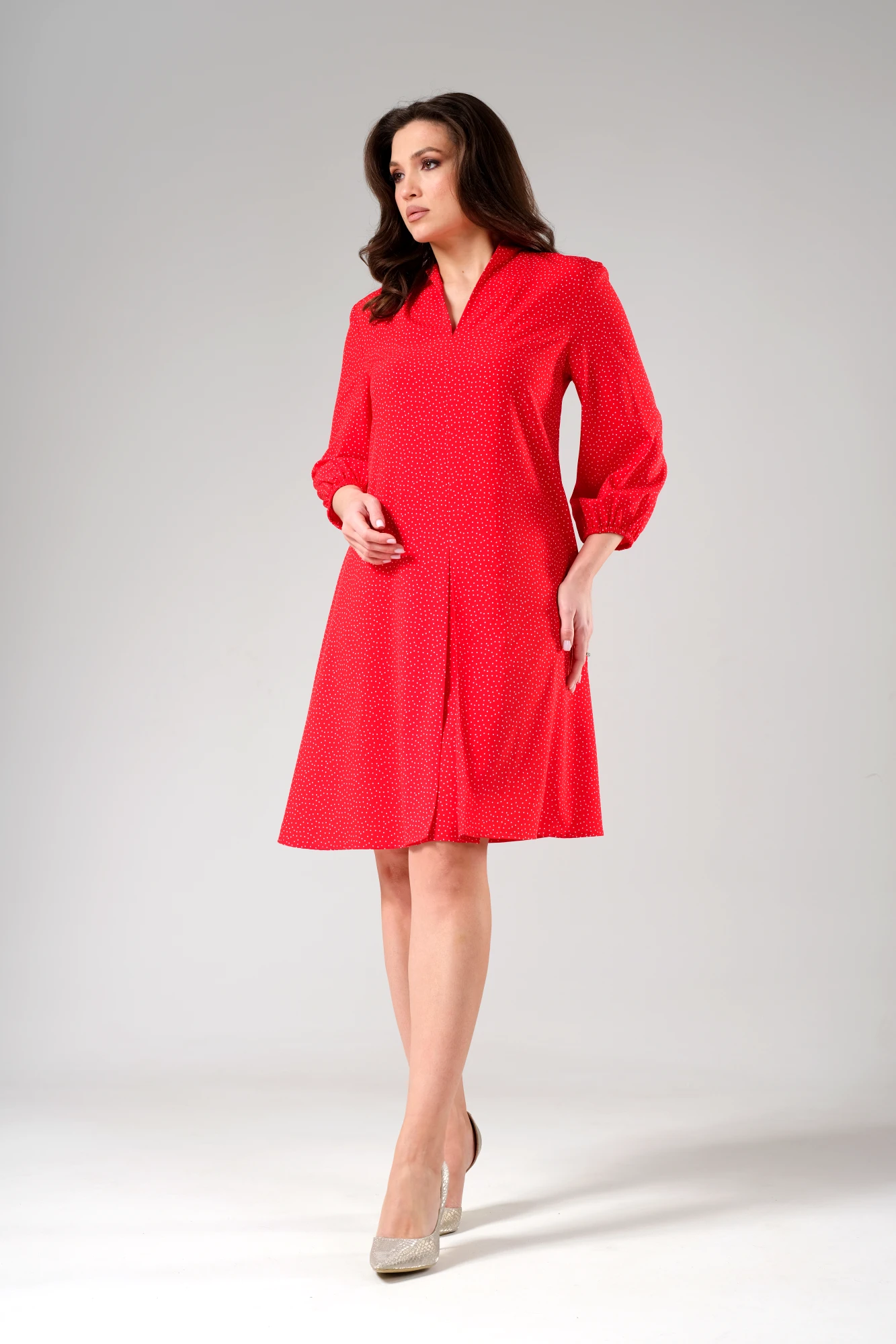 Платье А-образного силуэта с V-образным вырезом. Рукав в...