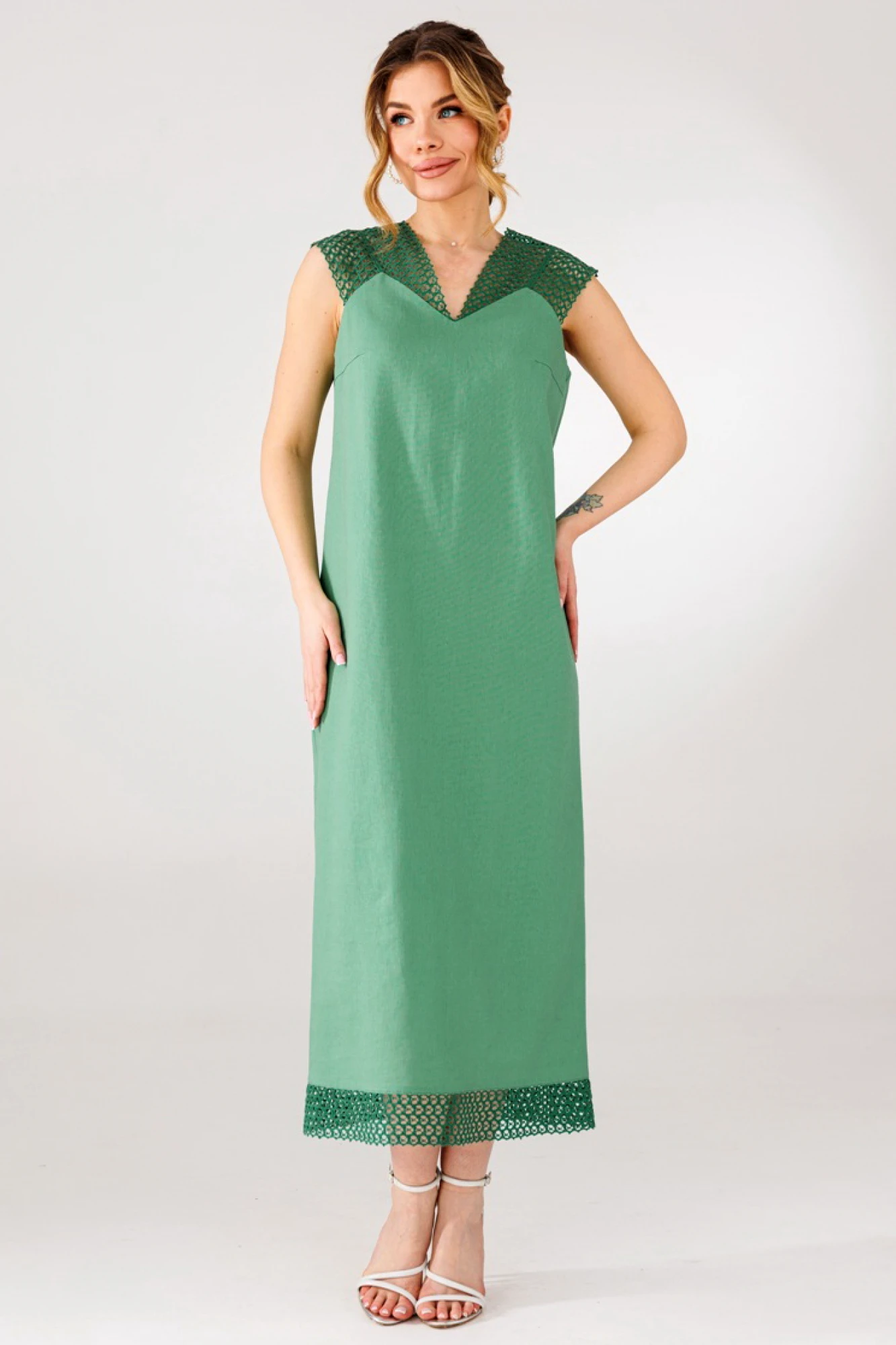 Платье прямого силуэта с V-образным вырезом горловины. По...