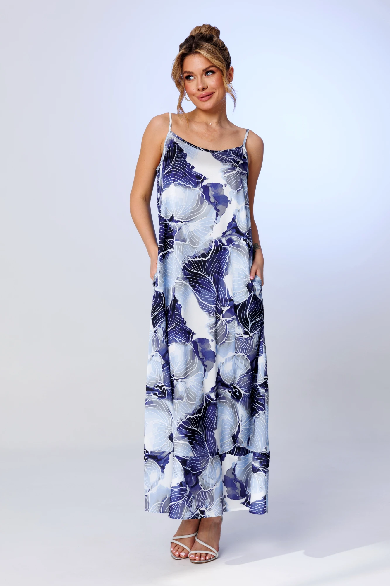 Сарафан А-силуэта, на тонких бретелях, с карманами в боко...