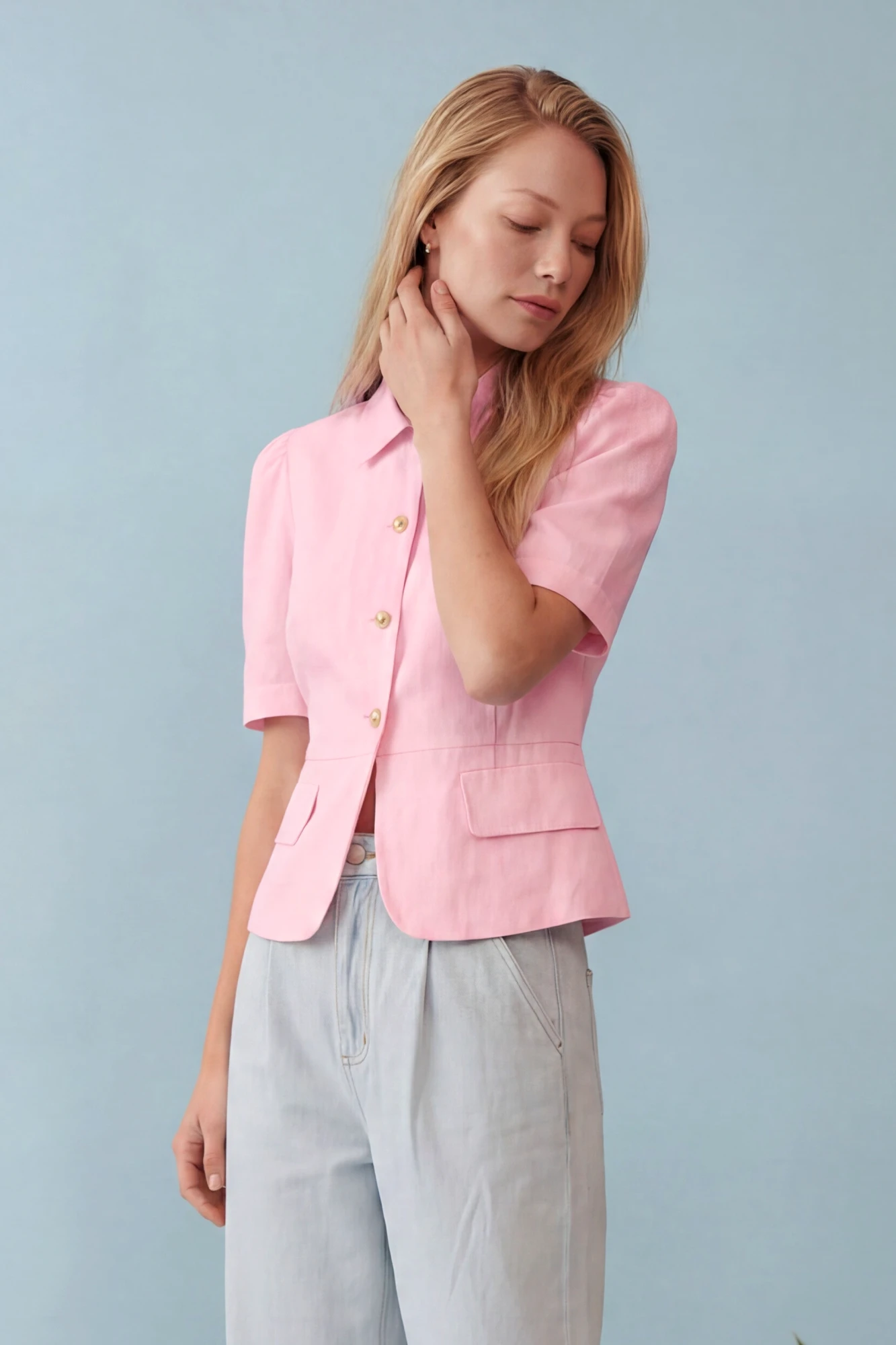 Элегантный полуприлегающий жакет, в котором сочетаются мя...
